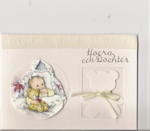 Zelfgemaakte kaart +envolop in kaarten zakje