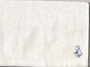 Zie foto 3 :mond doekje met aplicatie eendje.Leuk als kraam cadeau.