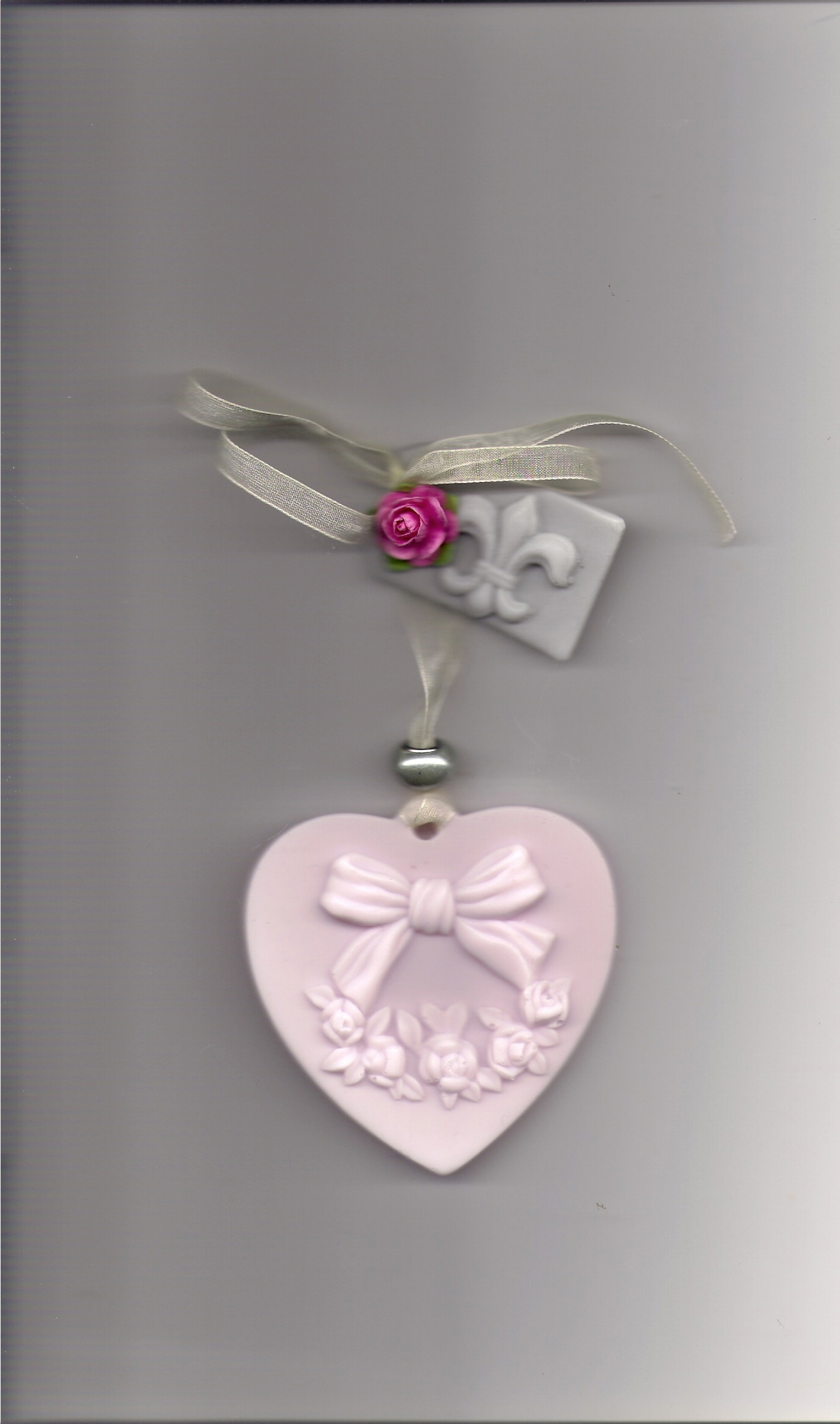 Zeepketting open hart met zeeplabel:kleur:rose ,grijs