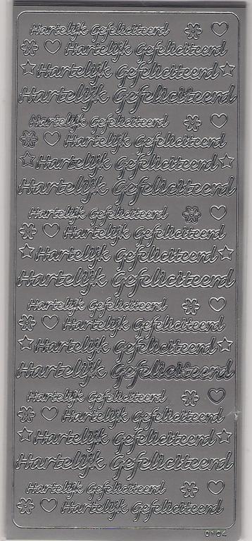 Hartelijk gefeliciteerd met hartjes/bloemetjes(ZILVER)