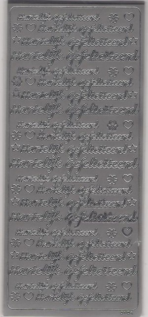 Hartelijk gefeliciteerd met hartjes/bloemetjes(ZILVER) -